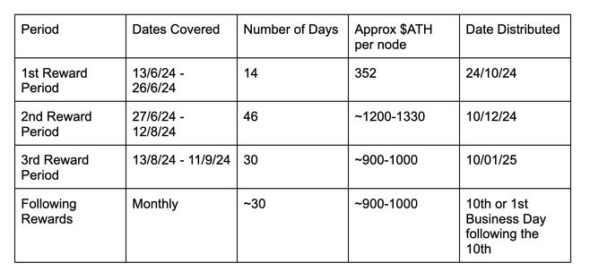 At the time of Aethir Node Sale in our app, SwissBorg planned to distribute $ATH Rewards from nodes quarterly, approximately one month after each financial quarter, because there were many unknowns about how the rewards would be distributed and of any potential penalties.
