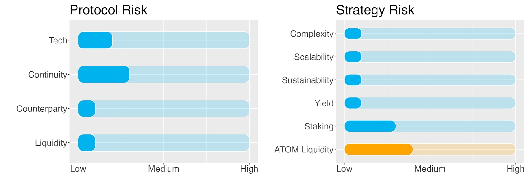 - ATOM liquid staking represents a liquidity yield-generating investment. No lockup period is present for this strategy but a 22-day cooldown is required to fully unstake the asset.