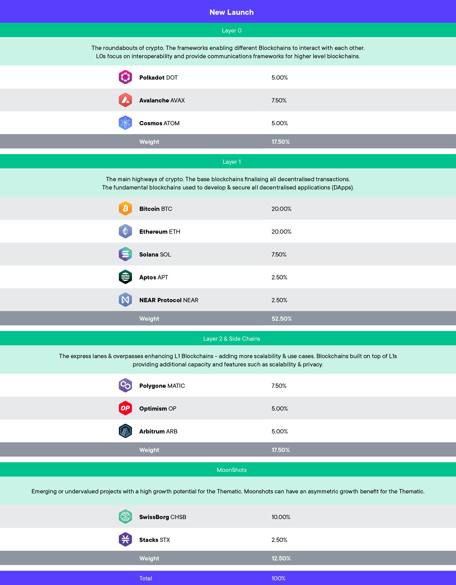 Our launch allocation is on the conservative side, reflecting the ongoing recovery from the 2022 bear market. However, the Best Blockchains Crypto Bundle is designed to be adaptive ready to shift as the market evolves.
