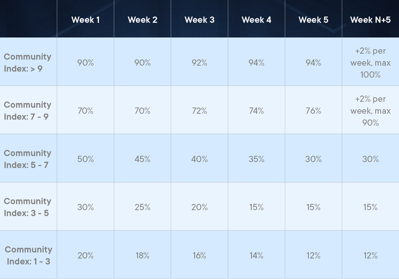 Simply, the higher the Community Index, and the longer it stays at high levels, the more fees we will use to buy back CHSB.