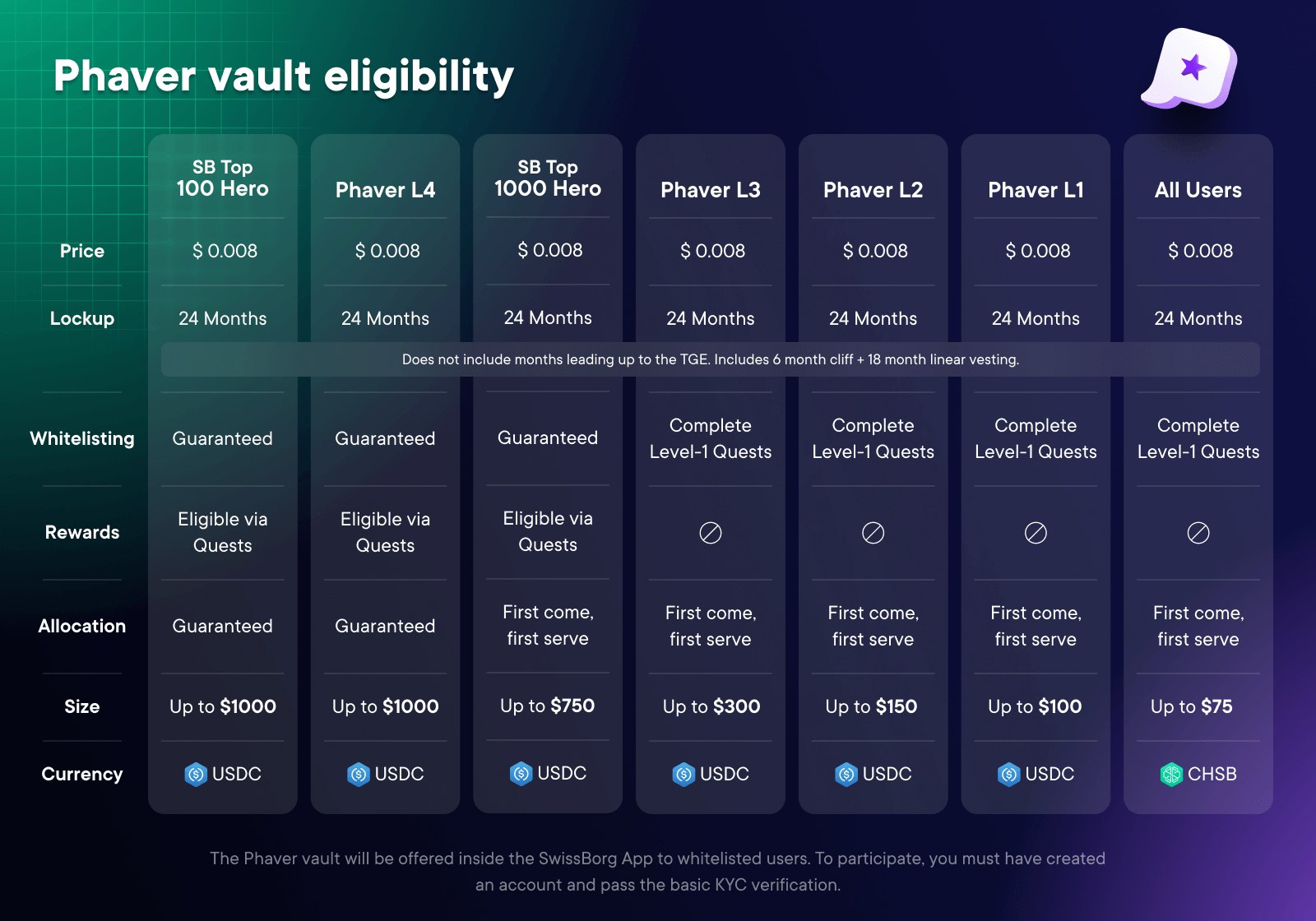 - Phaver is currently in the token private sale round. You can access this Early Deal via the SwissBorg app and doing the quests. The investors will be subjected to similar conditions as the other VCs investing in this round.
