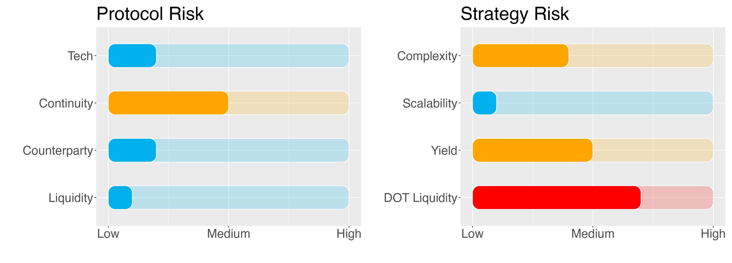 This DOT strategy comes with some risks. The investment strategy is fairly simple but yet it requires some understanding of how DeFi and CeFi operate. It does require a locking period (until October 2023) and rewards are paid out only at maturity.