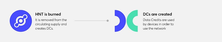 Helium used a simple but effective tokenomics model that incentivised the growth of the network. Hotspots provide wireless coverage and, at the same time, act as a network node and miner of the Helium Network Token (HNT). Anyone using Helium to transfer data had to use Data Credits (DC). 5.1 Token Utility