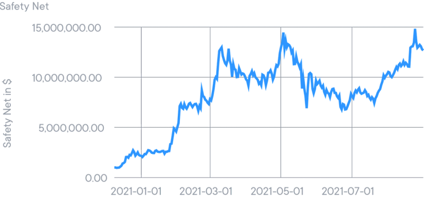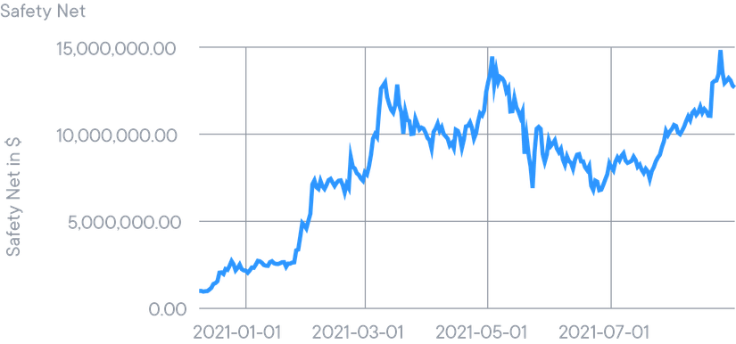 The Safety Net is a common pot for all Smart Yield wallets and therefore benefits from the yield of all wallets. With the compound growth of the other Smart Yield wallets and the recovery of the market, the Safety Net is above US10 million at the time of writing.