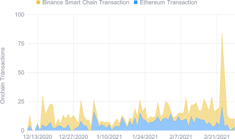 These transactions had a cost of more than $20,000 in transaction fees. Even though the number of transactions were made in majority on the BSC, the costs on these blockchain are stable while the costs on Ethereum increased by almost 100% due to the significant increase of gas fees.