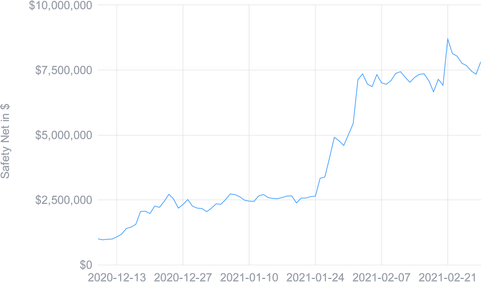 The Safety Net Program was triggered on February 9th following the economical attack of BT.Finance. Thanks to adequate risk management, the Smart Yield had very little exposure to the BT.Finance protocol, so the risk was fully covered by the Safety Net Program at a cost of $86,592.95. Due to the performance of the CHSB token throughout the month, alongside the increased use of the Smart Yield wallet, the Safety Net Program still experienced net growth of $2,813,000, and had a value of $7,820,687 at the end of the month.