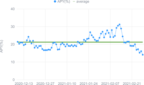 After more than two and a half months, the average proposed annual yield is still above 20% with a maximum yield of 31.22% reached in very good market conditions. Indeed, for more than one week, the yield proposed averaged more than 24%.