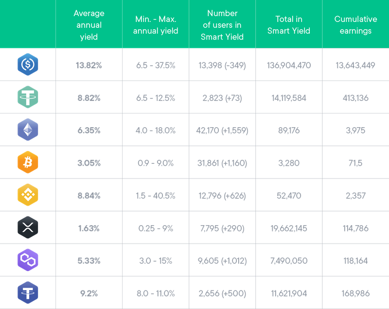 The Smart Yield wallet simplifies and optimises earning a yield on your crypto, every single day. The goal is to find the best return for the lowest risk, while offering some of the best yielding conditions available in the market. Learn more about how Smart Yield works.