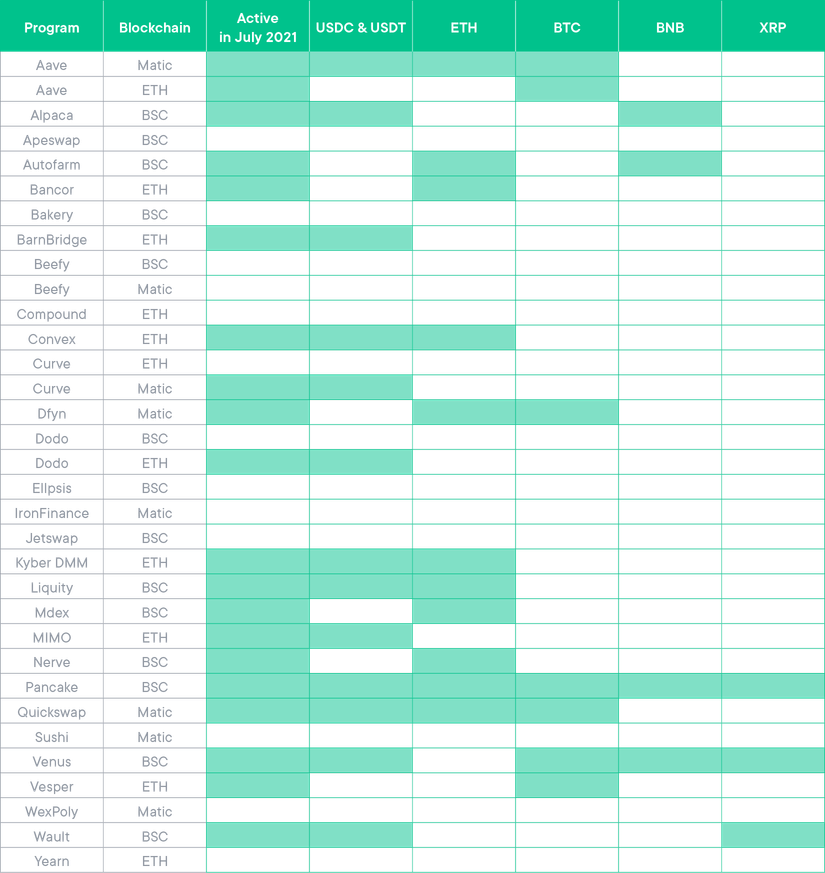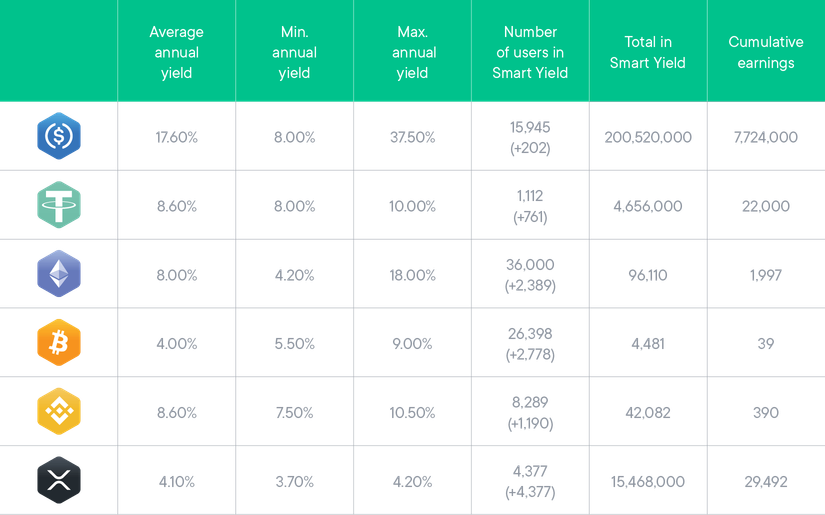 For clarification and a better overview of all the yield wallets, we have restructured the information presented in this section with a table that summarises the different performance of the Smart Yield wallets. With the recovery of the BTC and ETH price, we have seen a slowdown in the growth of the USDC Smart Yield wallet while BTC, ETH and BNB have shown significant growth in terms of number of users using the different Smart Yield. However, the amount in the USDC Smart Yield stayed relatively stable, which highlights the fact that users are still diversifying their wealth in unpredictable market conditions. In August, several milestones will be reached, with more than 8M in USDC, 2000 ETH and 40 BTC being earned by our users since the Smart Yield wallets launched.