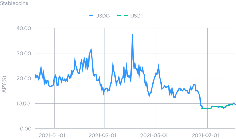 With the actual market conditions and the normalisation across DeFi platforms, we are still experiencing lower yields than before but the strategy optimiser was able to lower the volatility of the yields earned. Further volatility is expected in August, with events such as the London Hard Fork that could cause some variability in the yield rates as well as flow between the different Smart Yield wallets.