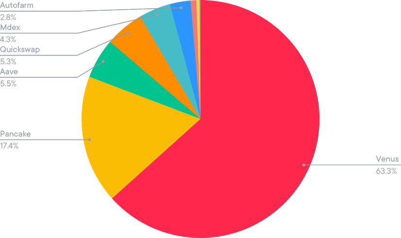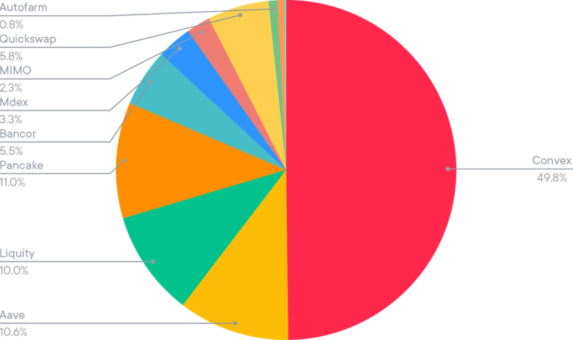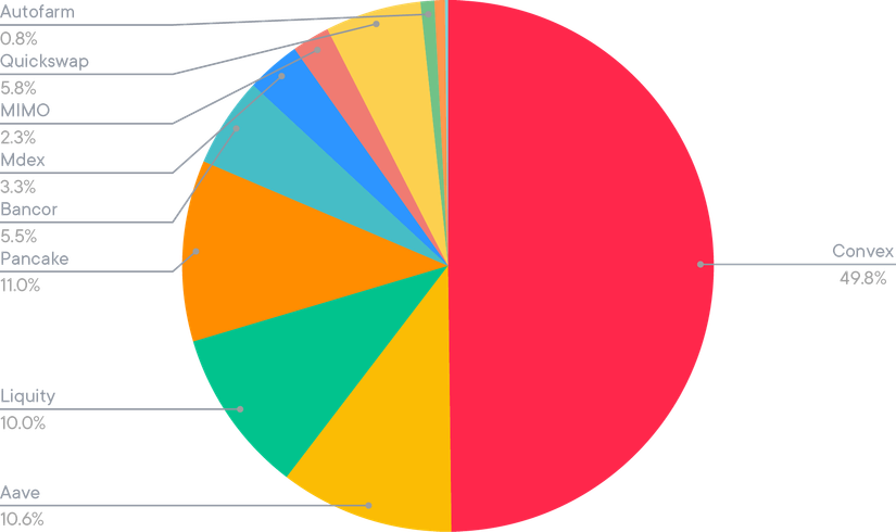 In order to obtain the best possible return for the optimal level of risk, the Smart Yield strategy involves diversifying into numerous DeFi and CeFi applications.