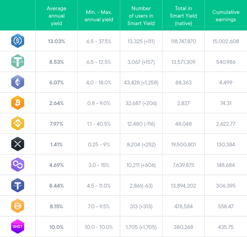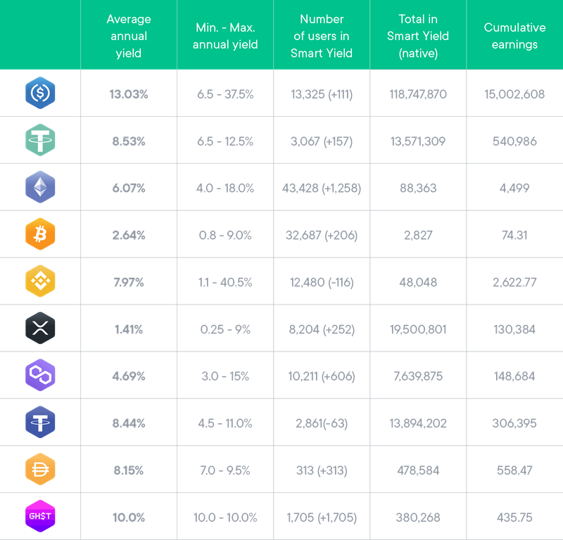 For the sake of transparency towards our community, on a monthly basis we aggregate our data to give you a report on the key figures related to SwissBorg’s Smart Yield wallets.