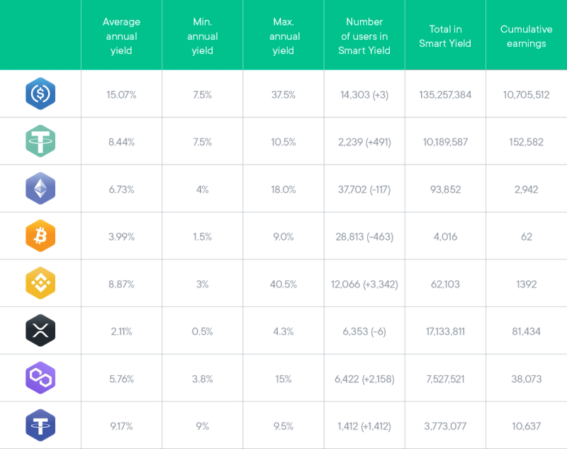 For the sake of transparency towards our community, on a monthly basis we aggregate our data to give you a report on the key figures related to SwissBorg’s Smart Yield wallets.