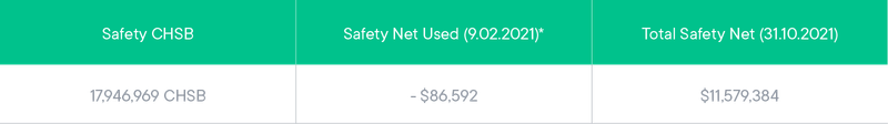 As explained in the September Yield Report, we planned to stop accruing the Safety Net. Its total value has been kept and is now following the rate of CHSB. This change happened on October 7th, for a total value of, $12,024,469. The surplus of the yield used before to top up the safety net is now used to increase the rates offered to the users.