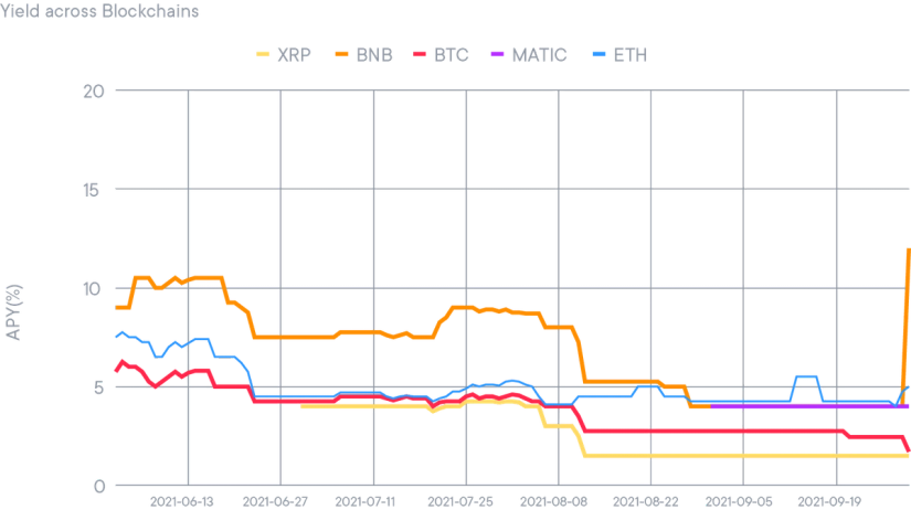 The end of the month was surprising, with BNB suddenly reaching 12%. This was due to an increased demand for lending on Venus.