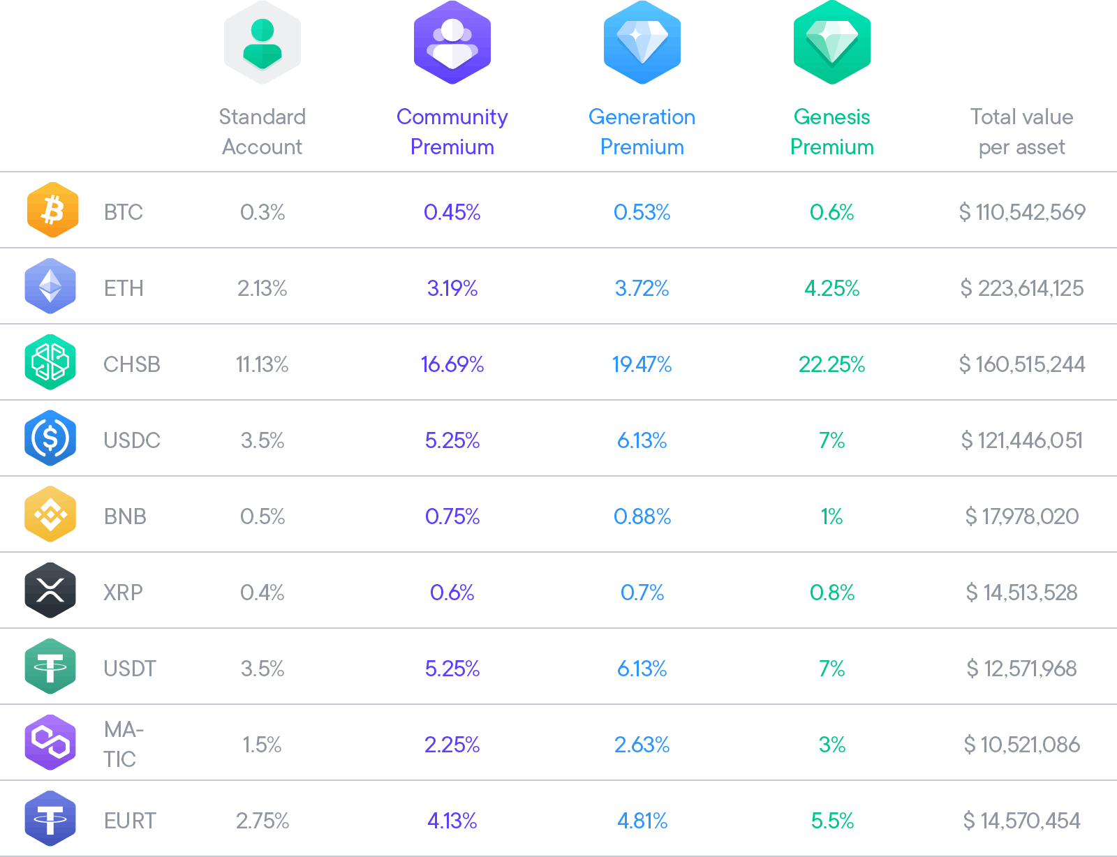 CHSB Yield 2.0 has yield tiers designed to help users with smaller holdings grow and reward those with larger holdings over the long term. Why did we decide to take this route? Because we want to have an ecosystem that is healthy and benefits all its users.