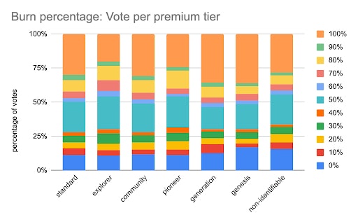 Cependant, les utilisateurs des autres niveaux premium ne devraient pas être déçus, puisque la répartition des votes est assez homogène sur tous les niveaux. Le pourcentage de brûlage moyen pondéré global s'est élevé à 59,51 %, ce qui représente un total de 3 451 580 tokens.