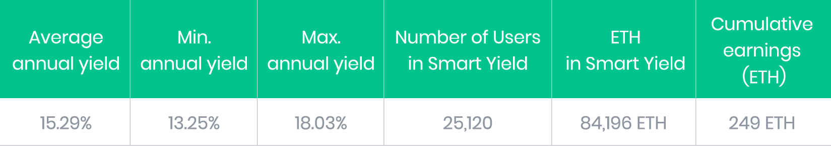 Depuis son lancement le Smart Yield sur Ethereum a livré un rendement moyen de 15,2%, il est donc dans une position extrêmement compétitive sur le marché avec des rendements stables et significatifs.