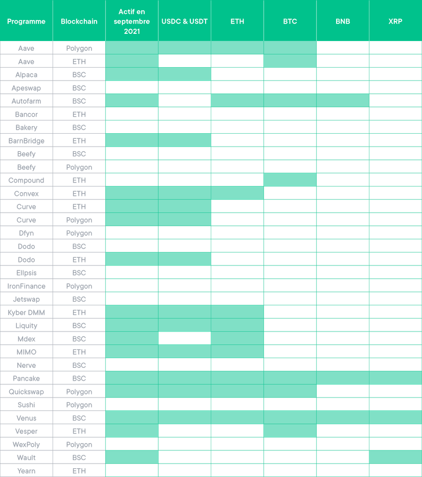 L'histoire limitée du Bitcoin a également montré que septembre est l'un des mois les moins performants, et cette année n'est pas différente. L'activité de la DeFi est généralement en corrélation avec la performance du marché des cryptoactifs, et bien que la valeur totale bloquée (TVL) n'ait pas diminué, nous avons assisté à une période de stagnation. Ceci est dû au fait que Fantom et Avalanche ont commencé à mettre en place des programmes d'incitation pour augmenter l'adoption par les utilisateurs, où les deux offrent leurs tokens natifs pour déposer des liquidités sur certaines de leurs plateformes DeFi.