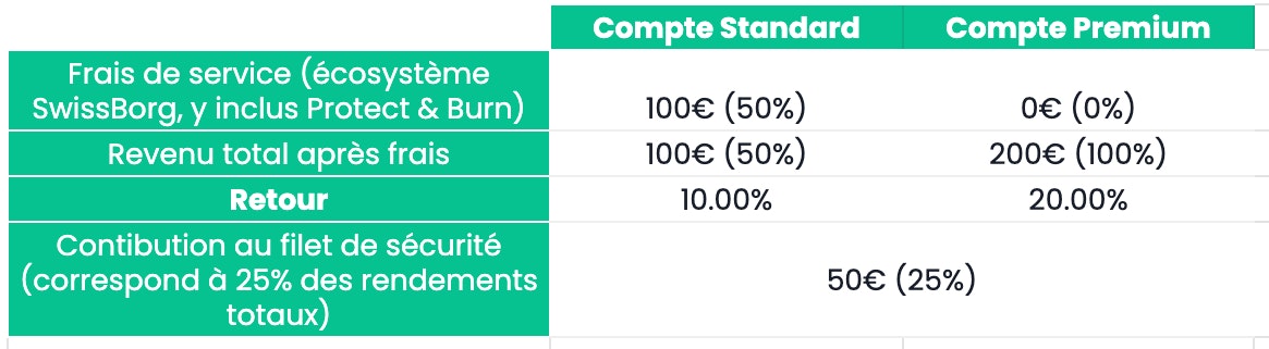 En plus de cela, SwissBorg a mis en place un programme de filet de sécurité de 1 million USD en CHSB pour se protéger contre le risque de smart contract. Et nous alimentons ce filet de sécurité avec l'équivalent de 25% des rendements obtenus pour garantir sa croissance parallèlement aux investissements de notre communauté.