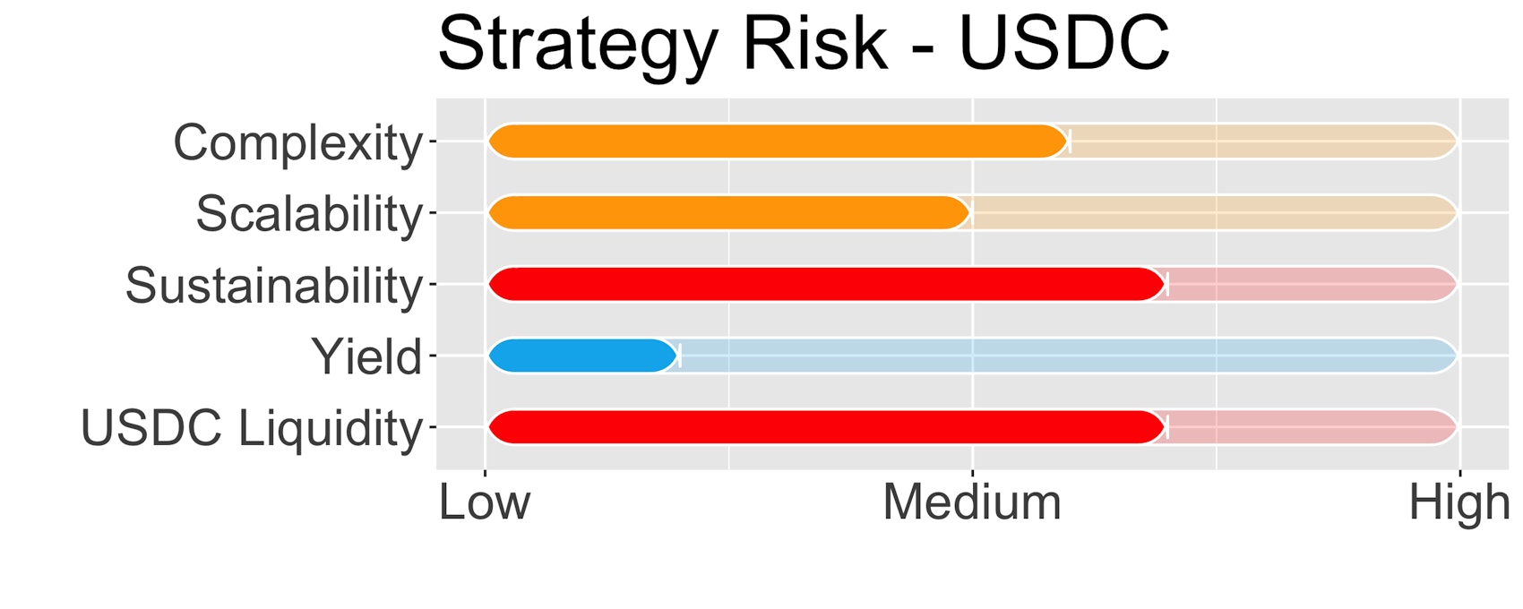Le risque de scalabilité de la stratégie est de 5/10 pour USDC et 1/10 pour USDT.