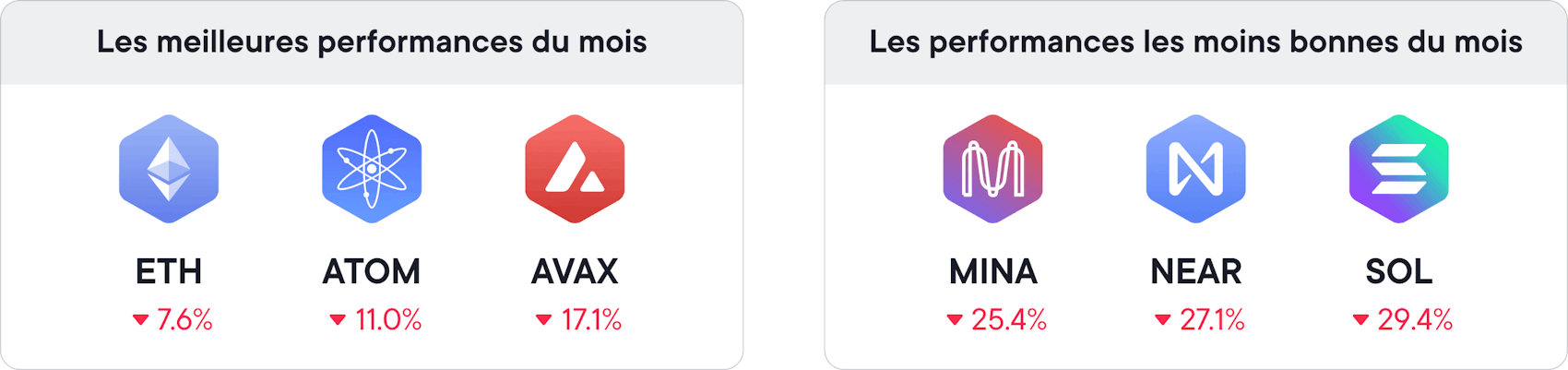 Comme le montre le deuxième diagramme, la différence entre les meilleures et les pires performances peut être très importante, ce qui met en évidence le risque et les opportunités manquées que peut représenter la sélection manuelle des tokens. En comparaison, la Thématique Web3 permet une exposition à de nombreux tokens, ce qui vous permet de minimiser les baisses et de conserver une performance stable grâce à une diversification ciblée.