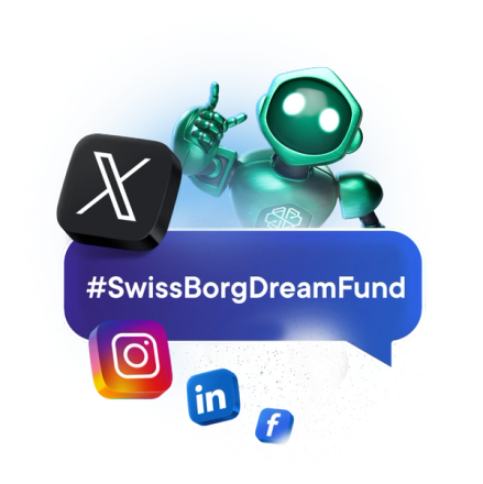 Vous voulez augmenter vos chances de passer à la phase suivante du concours ? Partagez le lien vers une vidéo que vous publiez sur vos réseaux sociaux. De plus, les 10 posts sur X, Instagram ou Facebook ayant reçu le plus de likes seront automatiquement sélectionnées parmi les 300 finalistes ! N’oubliez pas de taguer SwissBorg et d’inclure le hashtag #SwissBorgDreamFund.